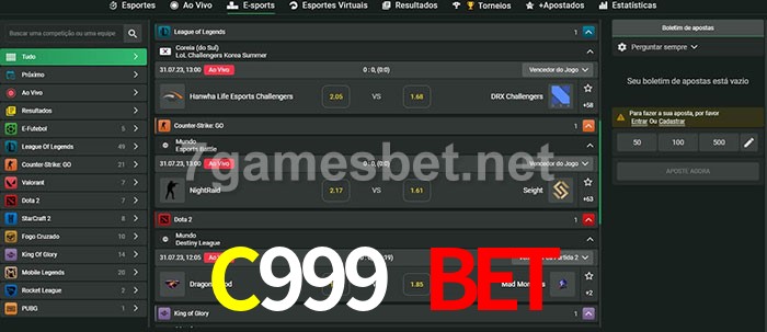 O C999 Bet oferece uma grande seleção de opções de apostas em e-sports com probabilidades competitivas